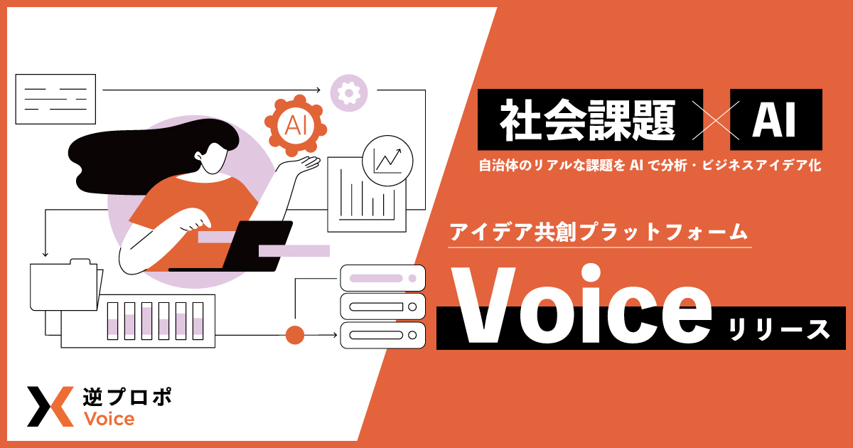 当社の連結子会社である株式会社ソーシャル・エックス(本社:東京都渋谷区、代表取締役:伊藤 大貴)は、「社会課題×AI」のアイデア共創プラットフォーム「Voice」(https://voice.gyaku-propo.com/)のサービス提供を開始いたしました。課題起点のビジネスアイデア生成のサービス提供により、新規事業を検討いただいている企業へ、ビジネスアイデアを毎月最大2,500件提供いたします。